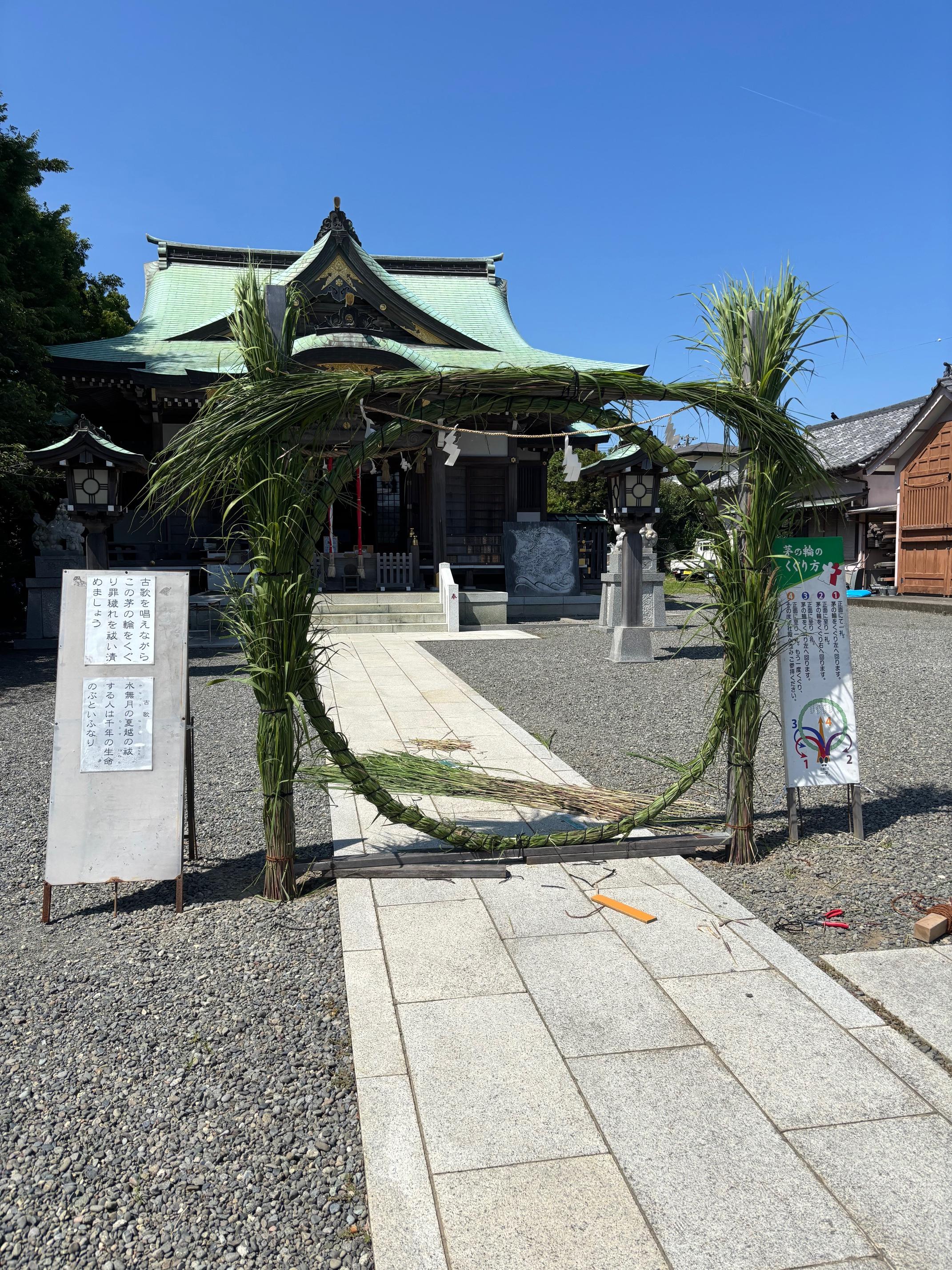 6/30月曜日16時に斎行予定です。氏子役員の方々にお手伝いいただき完成した茅の輪は6/22から7/15くらいまで設置予定になります。
